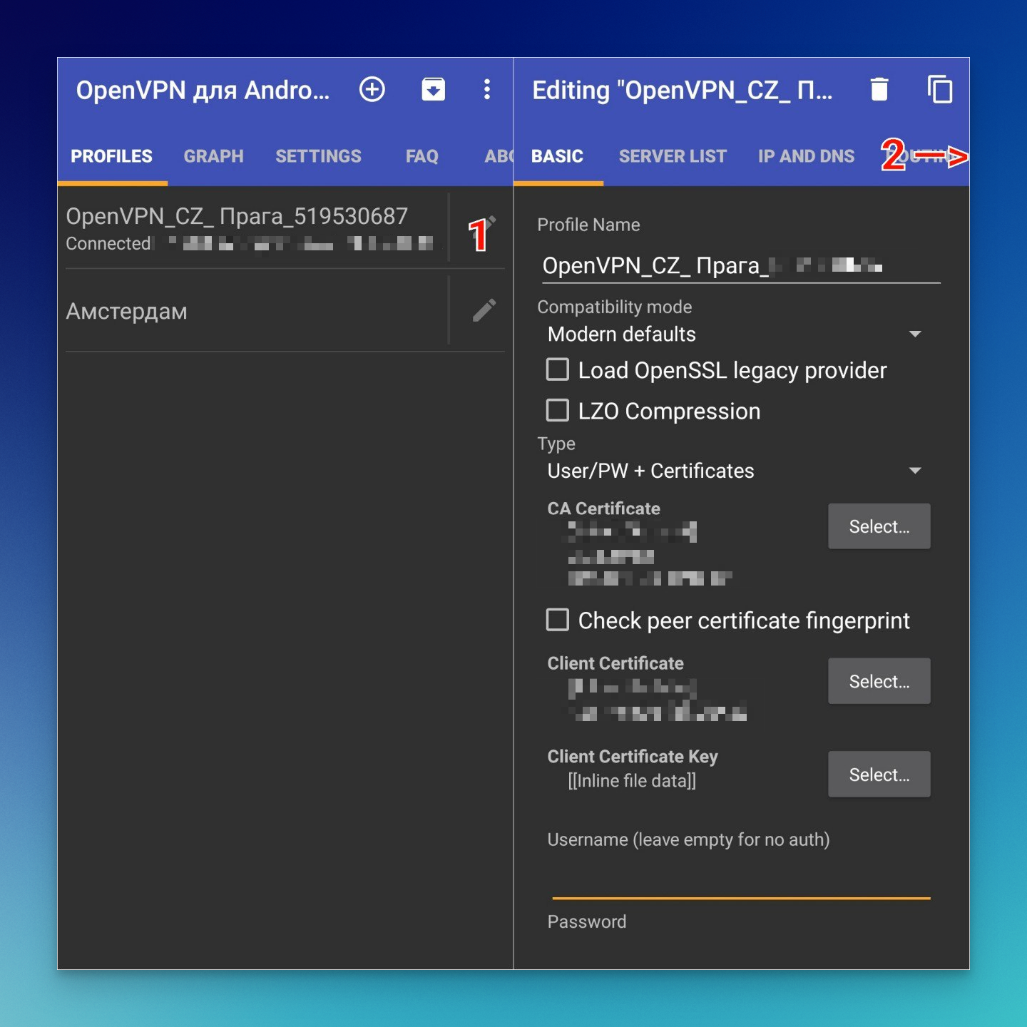 Для работы раздельного туннелирования сначала нужно настроить OpenVPN на смартфоне: