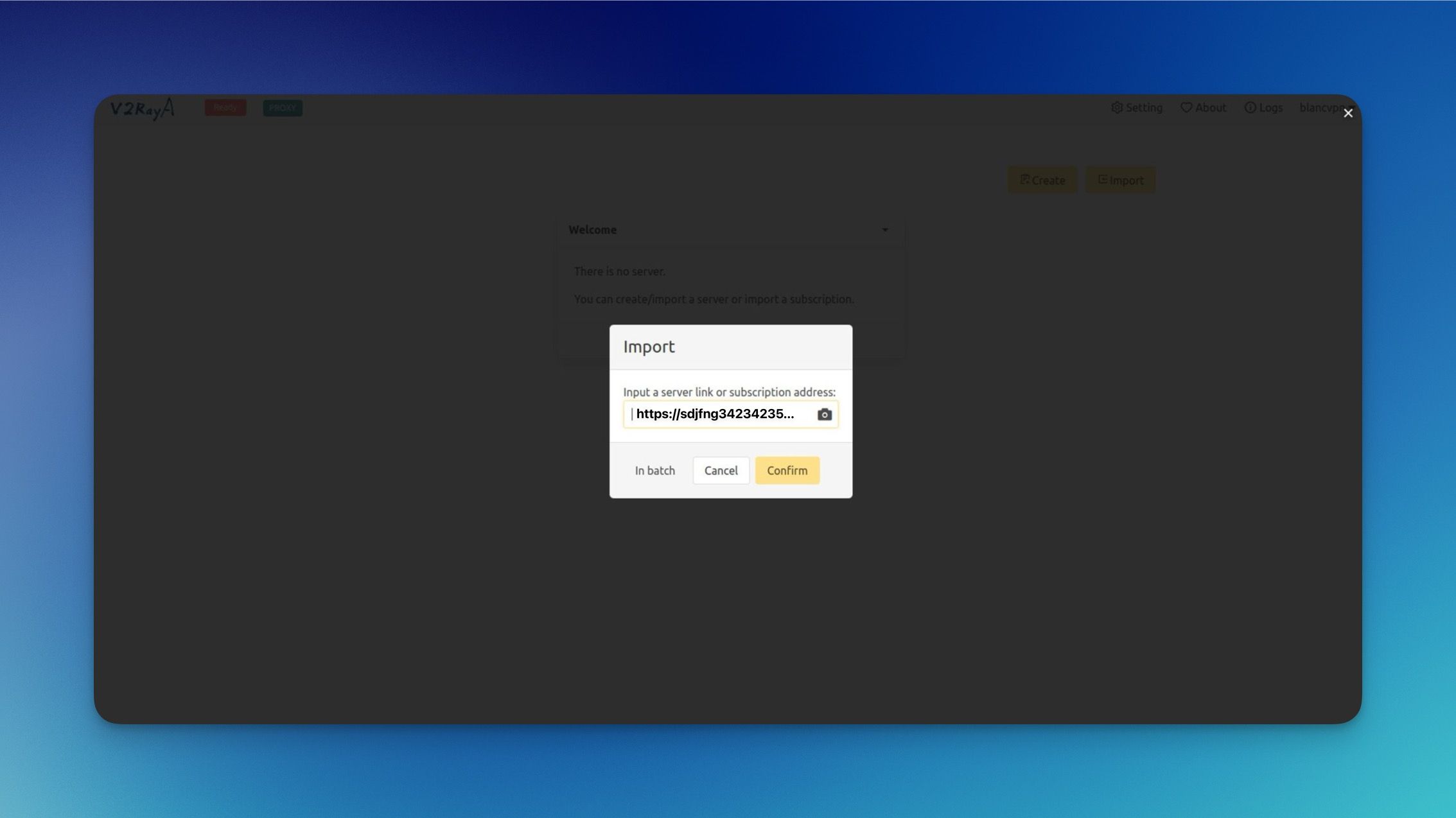 Нажмите Import (Импортировать), чтобы импортировать подписку.