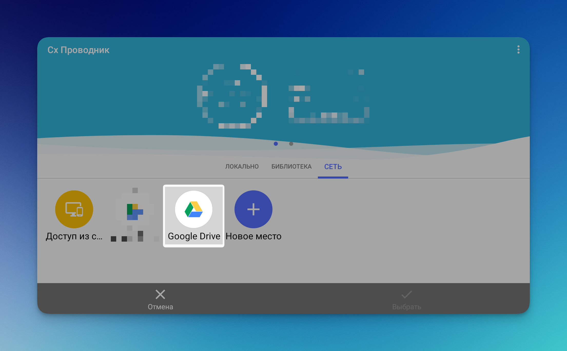 Выберите Google Drive и авторизуйтесь с помощью Google-аккаунта. Предоставьте приложению разрешение на просмотр файлов.