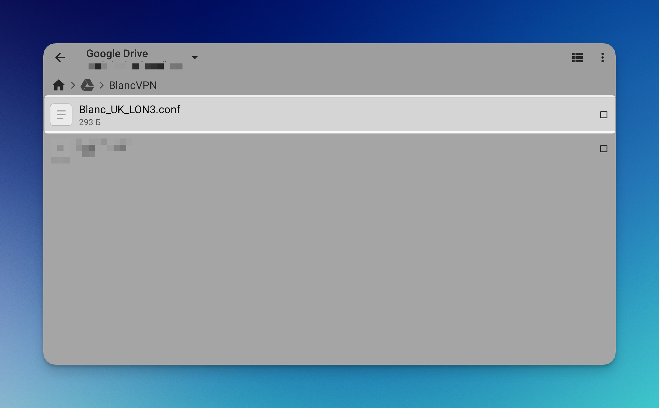 Войдите в личный кабинет. Нажмите Установить → выберите устройство → Другой VPN-клиент → Перейти к инструкции → Android → в графе Локация и протокол выберите WireGuard и локацию → сохраните нужное количество файлов конфигурации .conf.