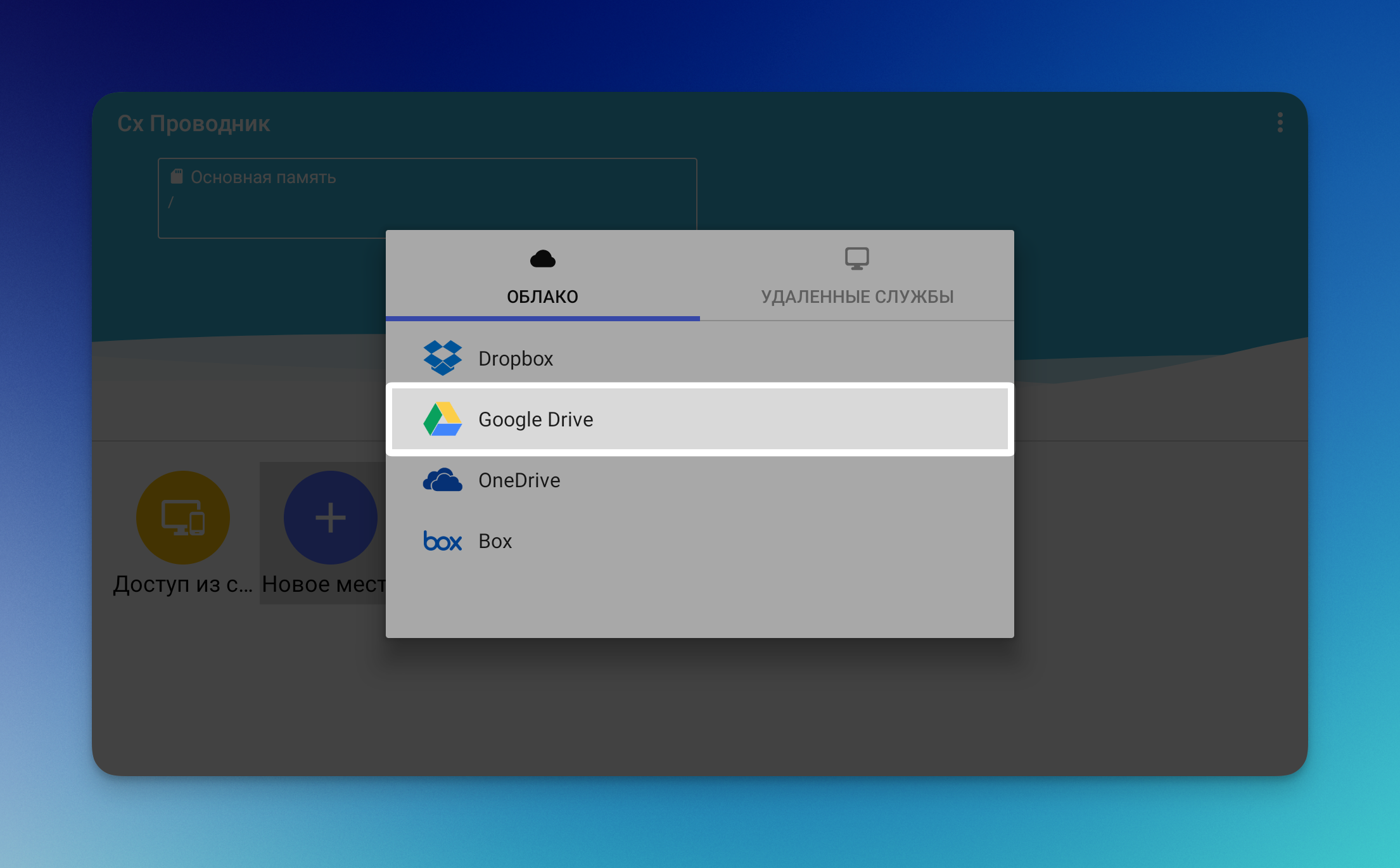 Для настройки VPN нужно отправить со смартфона или компьютера на телевизор файл конфигурации. Поэтому сначала нужно создать «мост», позволяющий пересылать файлы между двумя устройствами. Для этого предлагаем воспользоваться программой CX Проводник и облачным хранилищем Google Диск.